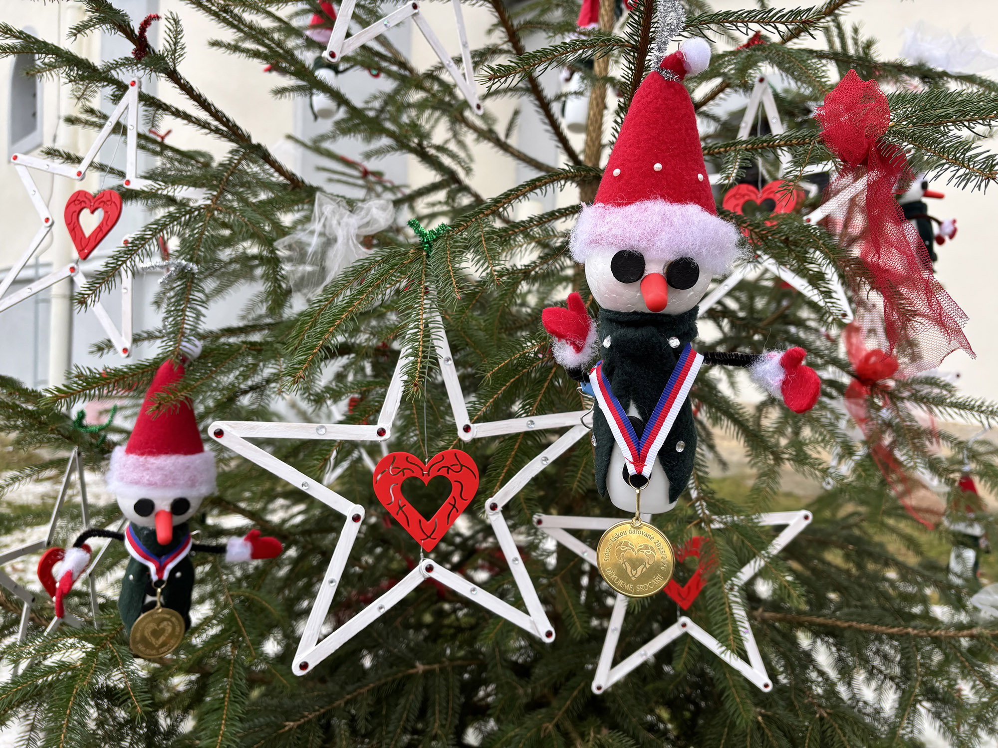 Vánoce jsou časem klidu, míru a kouzel. My jsme se je letos rozhodli rozzářit SRDCEM. Jako každý rok jsme se chystali ozdobit pro naše babičky a dědečky strom před Domovem. Ovšem tentokrát jsme vyrobili pro tuto příležitost originální ozdoby. Právě SRDCE, která chrání vánoční hvězdička. A k nim sněhuláky.