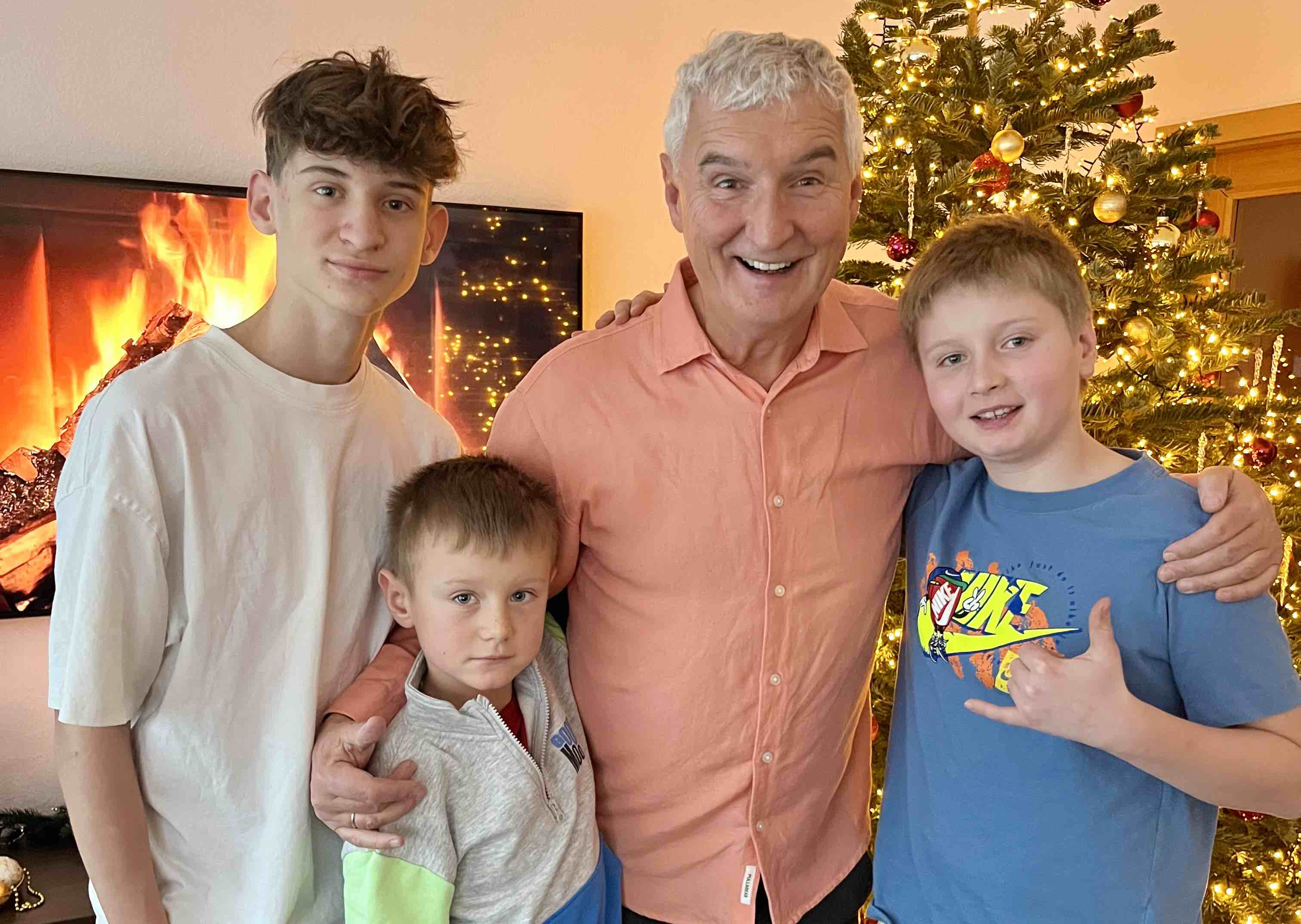 ← Vánoční pohoda u Nesvadbů. Michal se synem Markem a vnuky Míšou a Kríšou vloni u stromečku